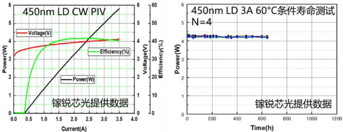 氮化镓基蓝光激光器关键技术取得产业化突破:氮化镓单晶衬底形成以中科院苏州纳米所、南京大学、苏州纳维、东莞中镓、上海镓特等为代表的产学研方阵,产品达到国际先进水平,国产化率达到50%以上;苏州镓锐、飓芯科技、三安光电等均推出蓝光激光器产品,室温连续工作3安培电流下光功率5瓦,WPE效率超过41%,60度条件下加速老化外推寿命大于2万小时。